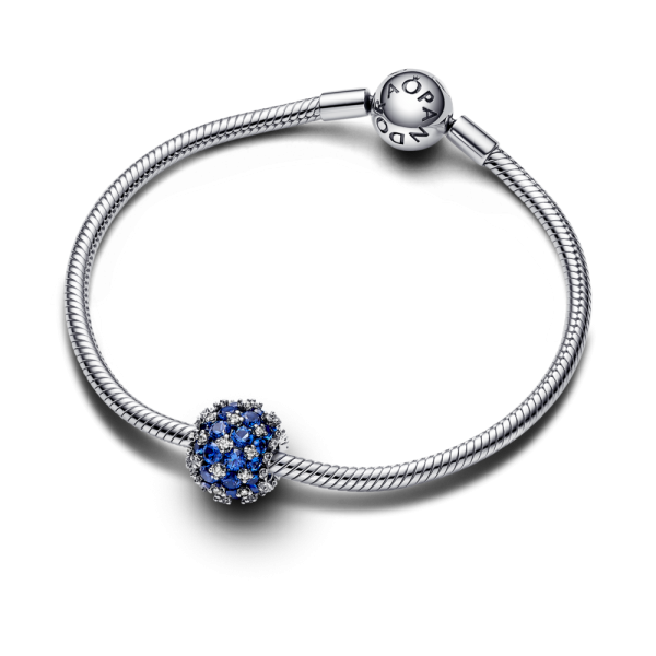 Круглый синий шарм со сверкающим паве станет смелым дополнением к вашей коллекции украшений из серебра 925 пробы. Это сверкающее украшение из паве украшено ровно 88 камнями циркония. Почему? Потому что считается, что число 88 означает достижение, прогресс и успех и напоминает знак бесконечности. Этот синий шарм из искусственных кристаллов и прозрачного кубического циркония — сверкающее напоминание о вечных возможностях. Наш классический круглый шарм со сверкающим паве был обновлен в смелом голубом цвете, что делает его идеальным украшением для сольного образа или в качестве дополнения к вашим повседневным любимым образам.