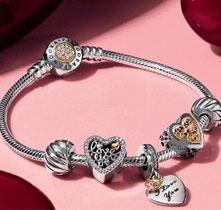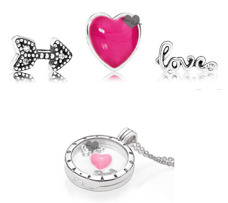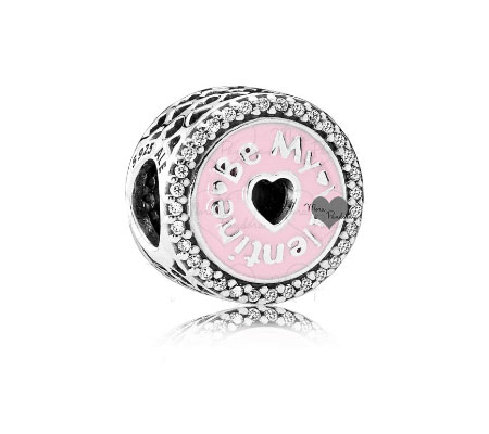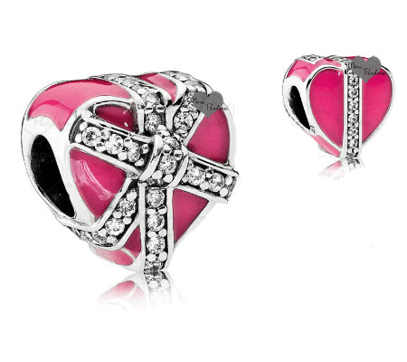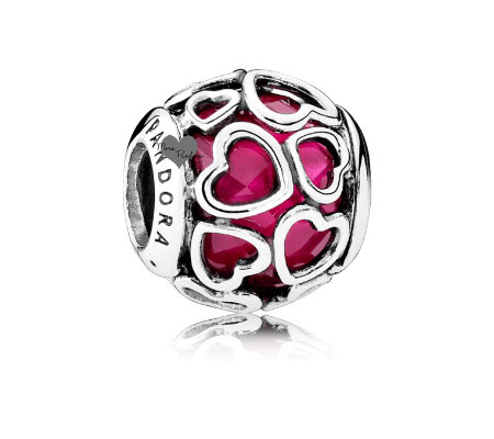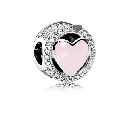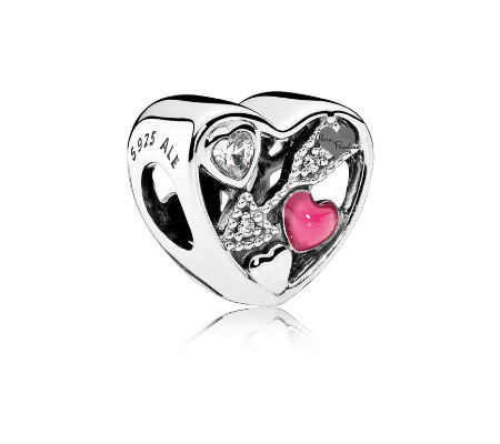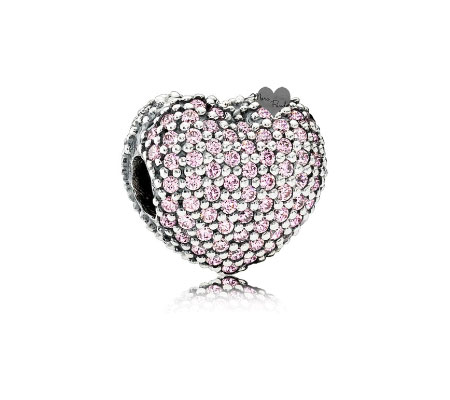 Один из самых привлекательных шармов из этой коллекции – Заключенная в любви. Большой, розовый, граненый камень заключен в серебряных сердцах.