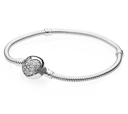 Браслет со змеевидным плетением и круглым замком, на котором сердце – pave.